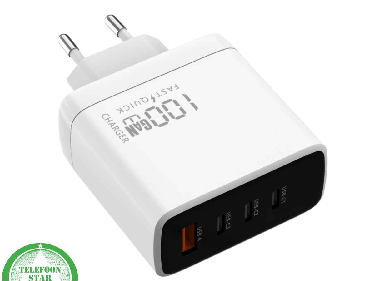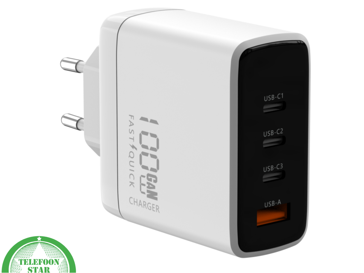 Laad supersnel en efficiënt op met de krachtige 100W GaN lader van Telefoonstar – compact, krachtig én zuinig.