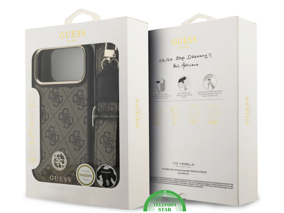 Het Guess iPhone 17 Pro Crossbody Hoesje in bruin design biedt een perfecte combinatie van mode, functionaliteit en veiligheid. Met zijn herkenbare 4G-monogramprint en goudkleurige afwerking straalt dit hoesje pure klasse uit. De verstelbare schouderband maakt het eenvoudig om je telefoon handsfree te dragen – ideaal voor dagelijks gebruik, winkelen of reizen.