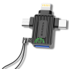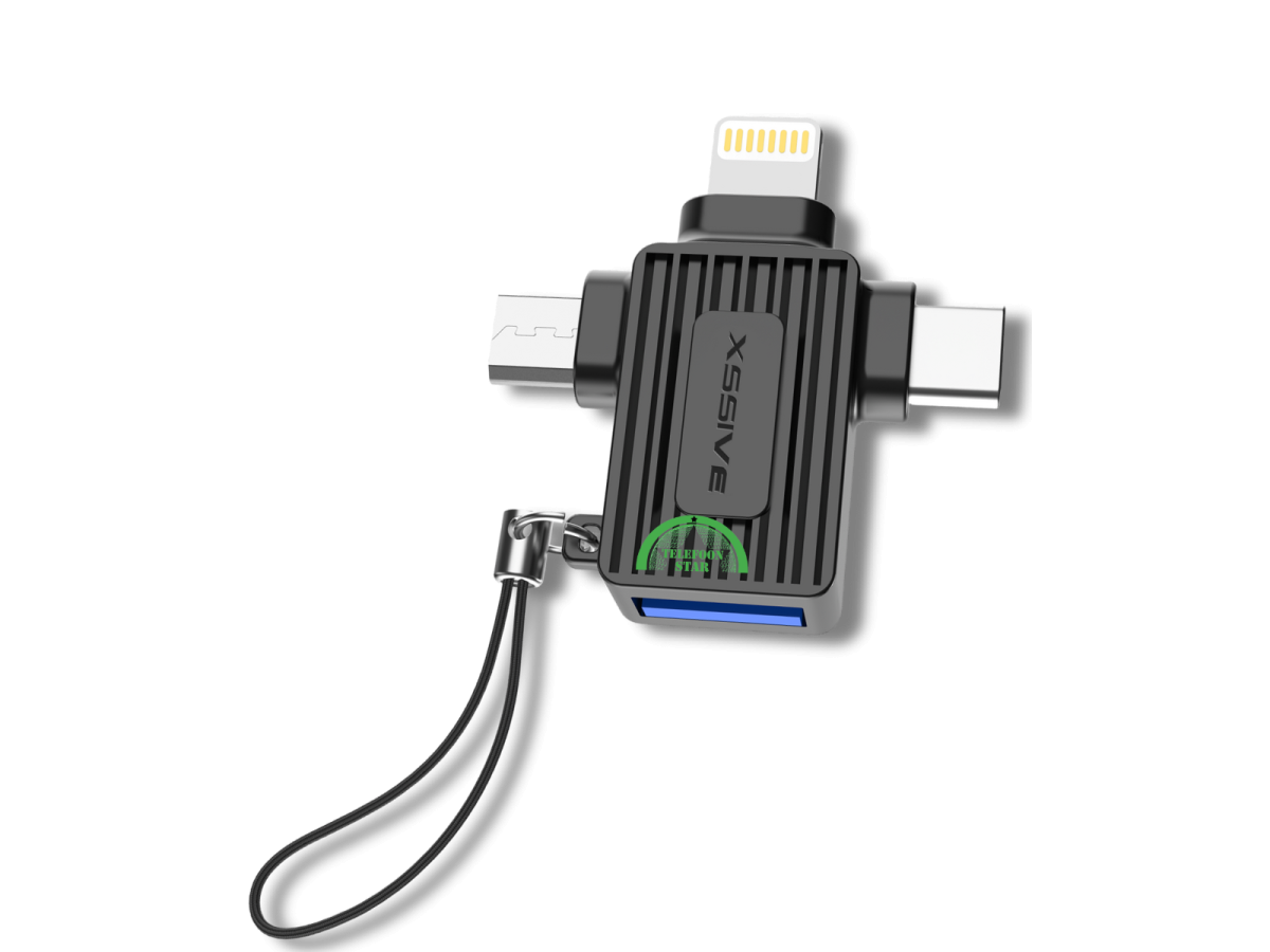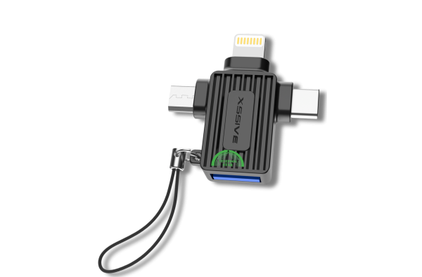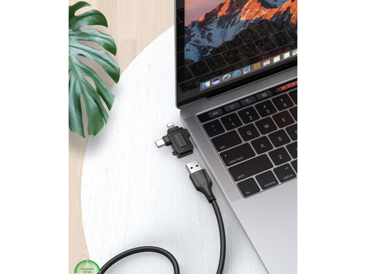 Deze 3-in-1 OTG adapter is de ideale oplossing voor wie meerdere apparaten gebruikt. Dankzij de combinatie van Lightning, USB-C en Micro-USB kun je eenvoudig data overzetten, accessoires aansluiten of apparaten opladen. Compact, stevig en perfect voor onderweg, werk of dagelijks gebruik.