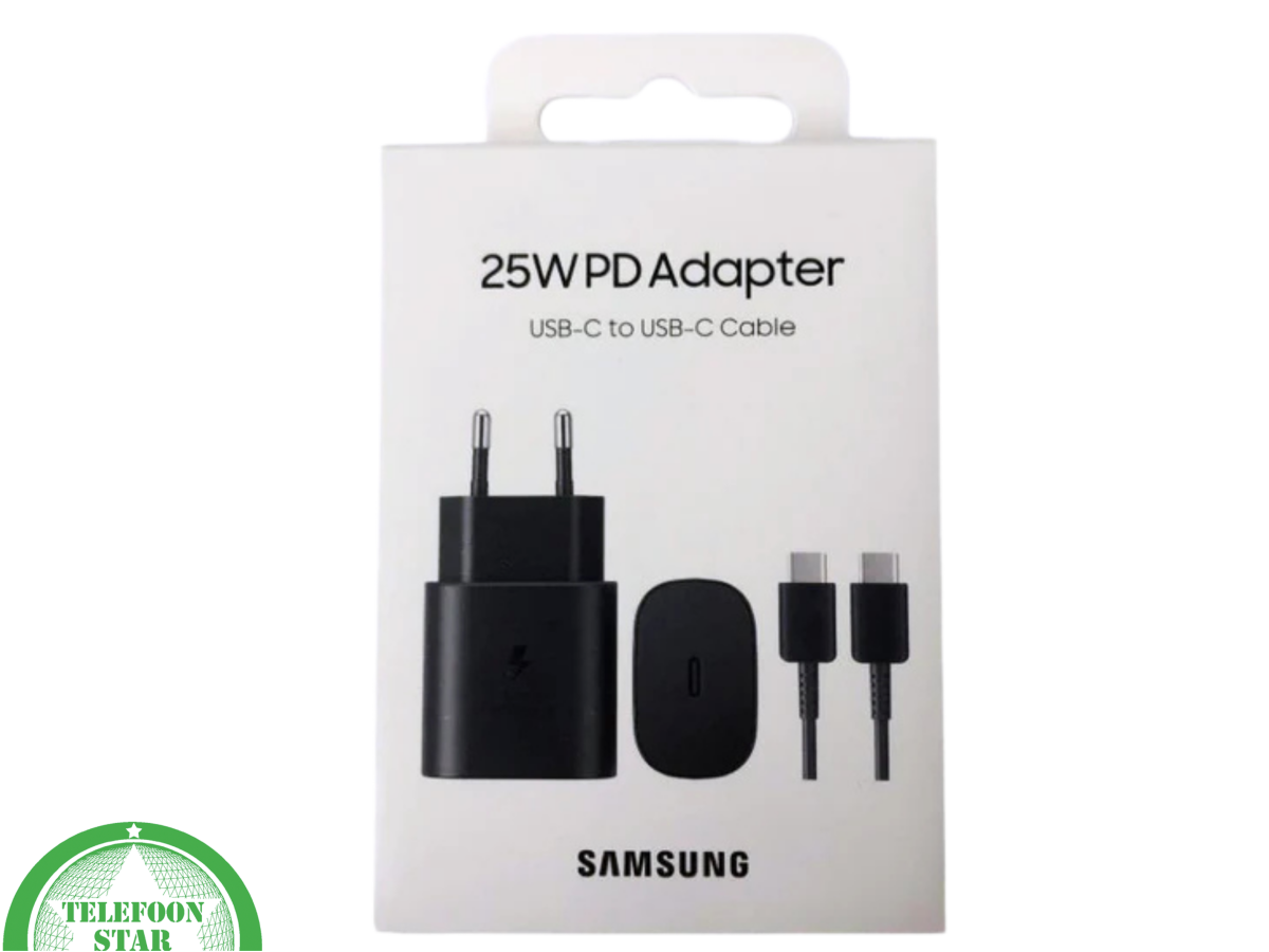 Samsung Adapter (25W PD) met USB-C naar USB-C Kabel Zwart – Compleet en Supersnel Opladen bij Telefoonstar Ede!