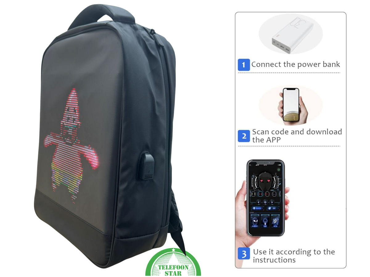 Deze LED Rugzak is dé blikvanger van 2025! Dankzij het ingebouwde LED-scherm en de slimme app kun je zelf afbeeldingen, teksten en animaties tonen – ideaal voor onderweg, festivals of dagelijks gebruik.