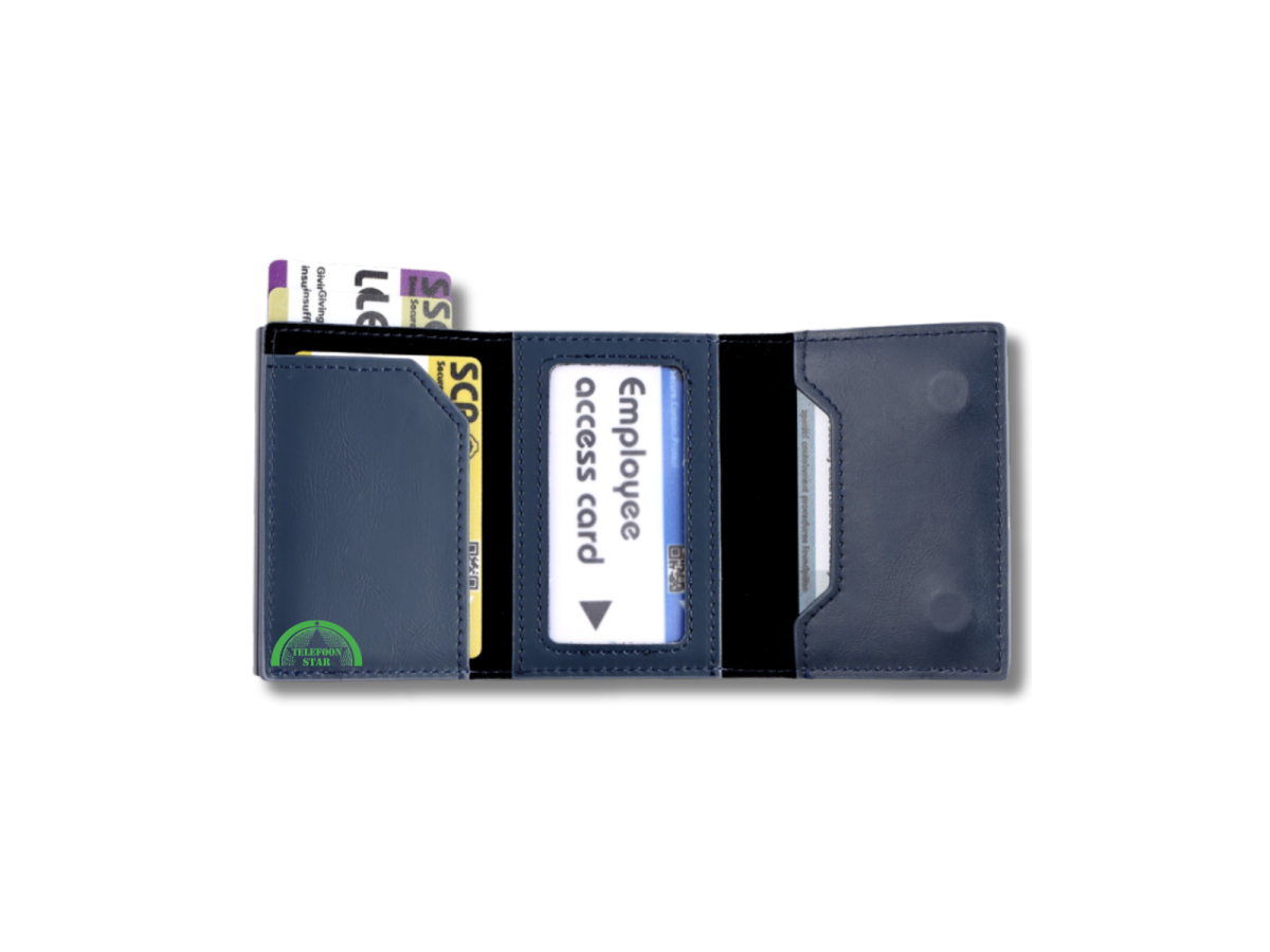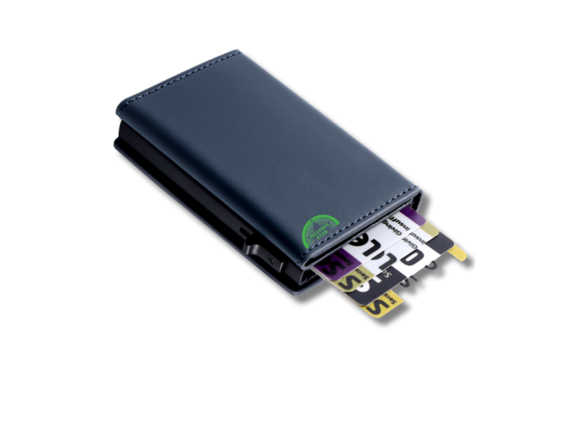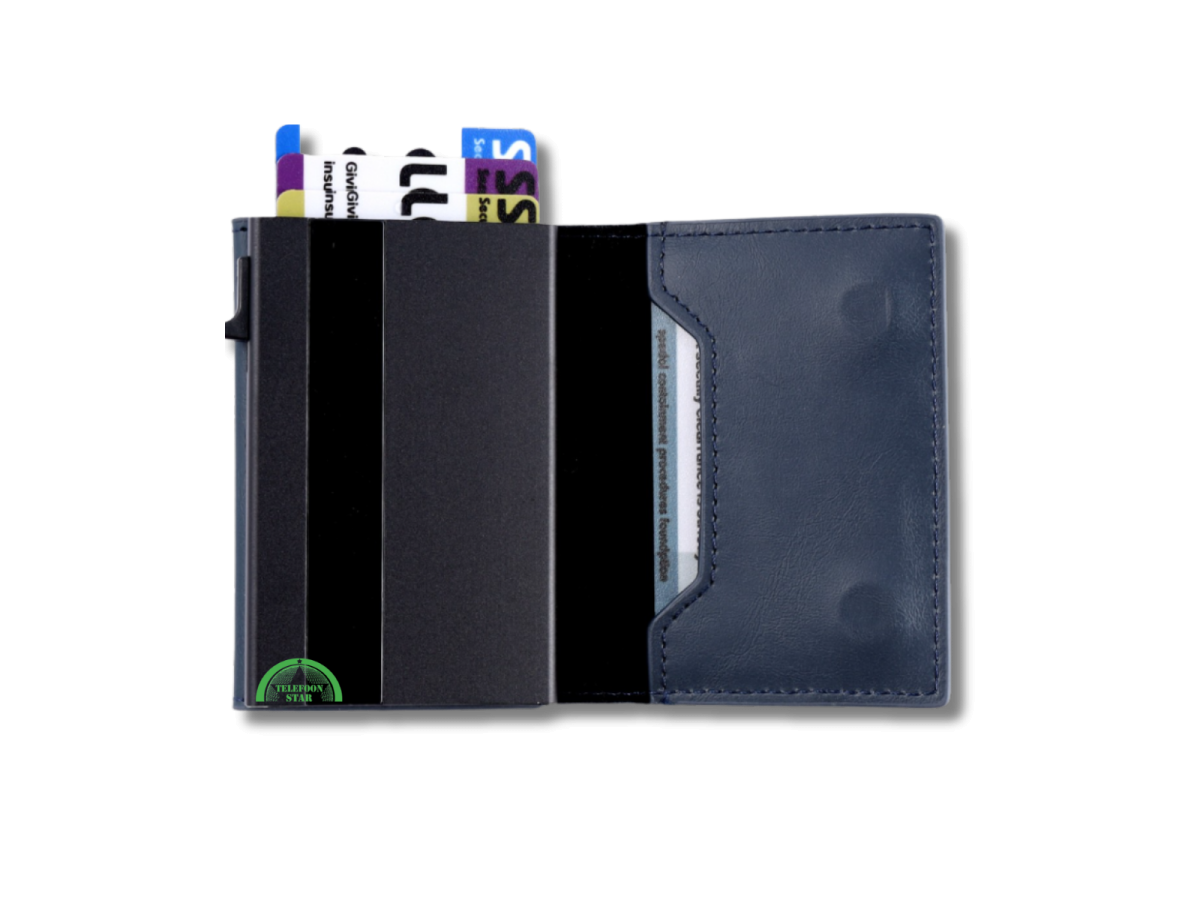 Deze luxe RFID pop-up mini wallet in blauw is de ideale keuze voor wie veiligheid, compactheid en stijl wil combineren. Dankzij het slimme pop-up mechanisme schuiven je pasjes met één druk overzichtelijk omhoog. De wallet is gemaakt van hoogwaardig kunstleer en voorzien van RFID-bescherming, zodat je kaarten veilig zijn tegen ongewenst uitlezen.