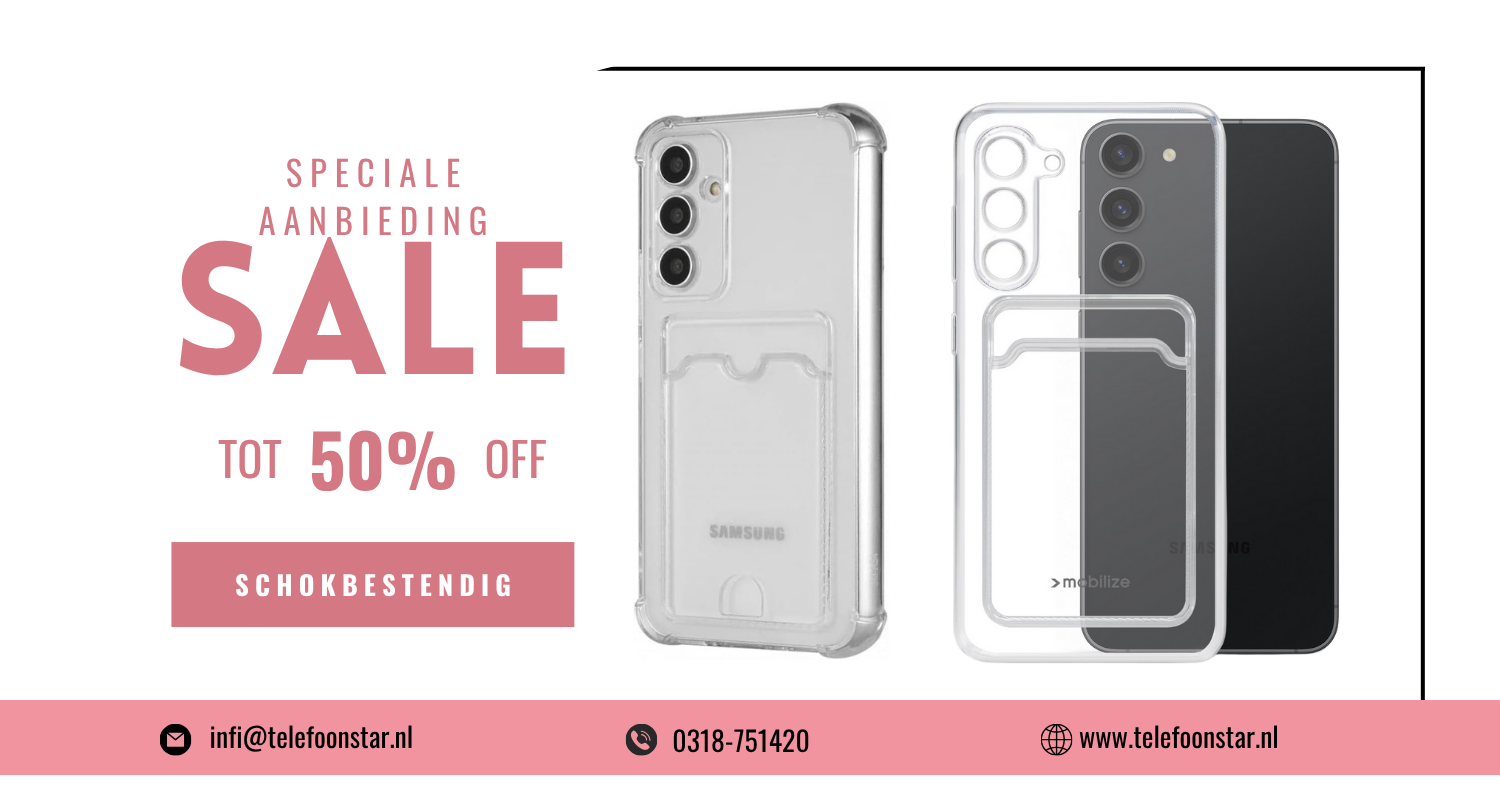 Telefoonstar Ede biedt hoesjes voor alle bekende merken, modellen en stijlen. Of je nu kiest voor een dunne transparante case, een robuuste shockproof variant of een stijlvolle leren bookcase – bij ons vind je altijd de beste bescherming voor jouw toestel. Bestel eenvoudig online of bezoek onze winkel in het centrum van Ede, naast de Hema.
