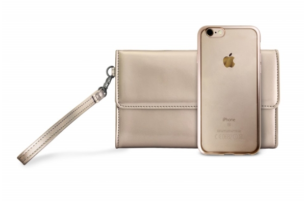 Deze Metal Duo Pochette en Satin cover van Puro is een fashion accessoire voor u iPhone. De clutch en de cover hebben beide een glanzende uitstraling. De clutch is speciaal gemaakt voor wat andere accessoires en heeft een apart vakje voor uw iPhone. De clutch kan eenvoudig worden gesloten met behulp van een magnetisch sluit systeem. De cover beschermt uw smartphone tegen val-, kras- en stootschade.