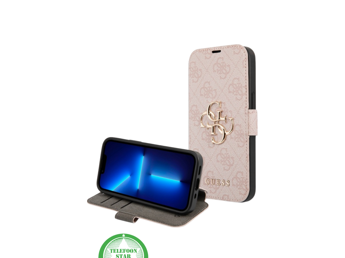 Geef je iPhone 15 een stijlvolle en elegante uitstraling met dit roze bookcase hoesje.