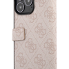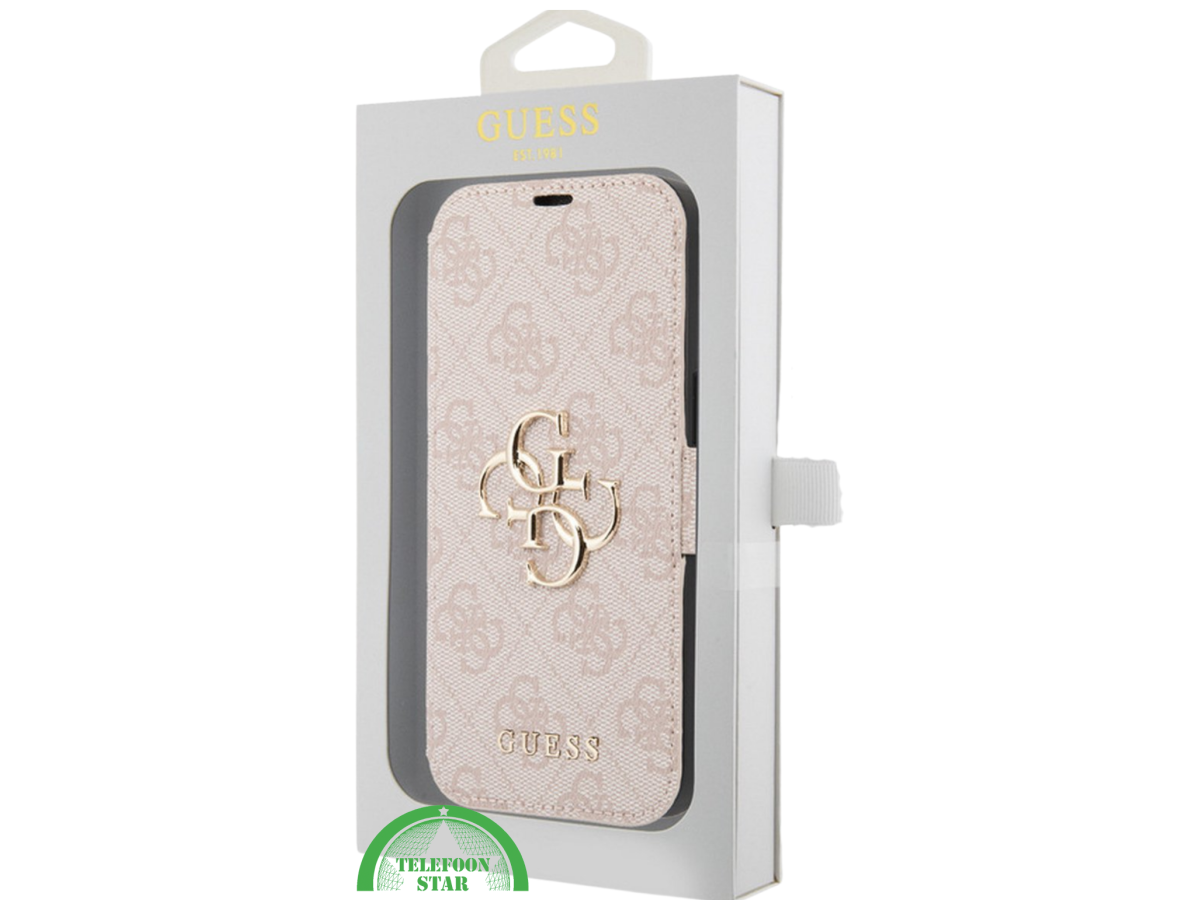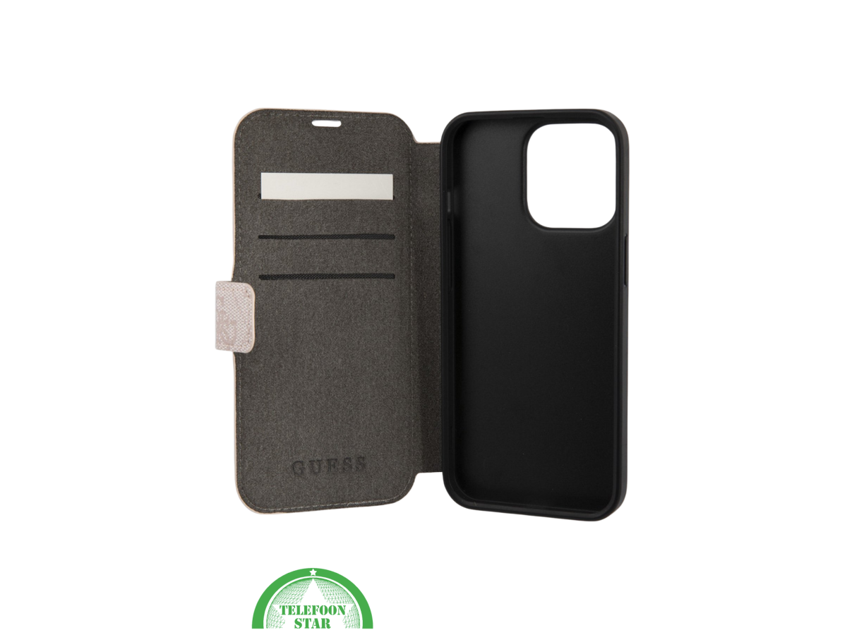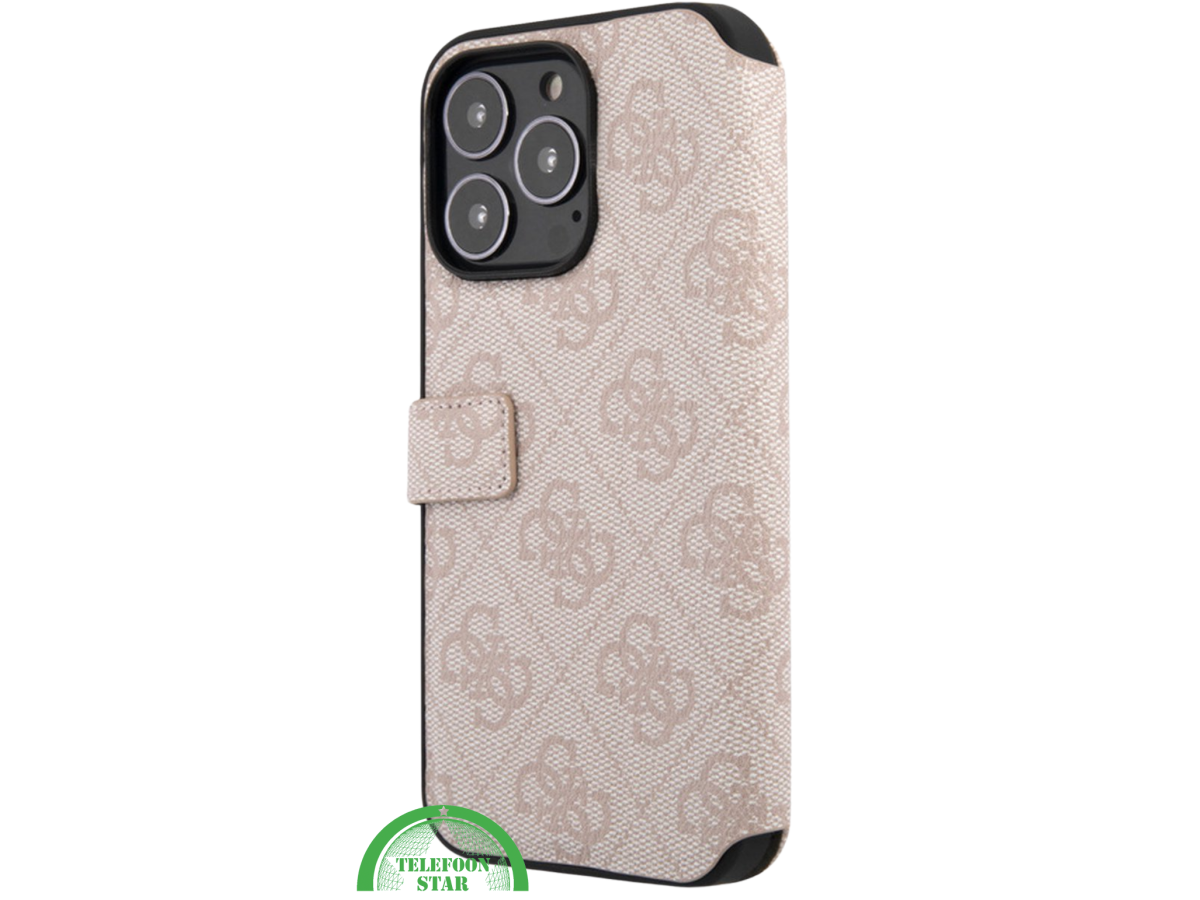 Combineer elegantie en functionaliteit met dit prachtige lichtroze bookcase hoesje voor iPhone 15 Pro. Het hoesje biedt 360° bescherming en straalt luxe uit dankzij het verfijnde patroon en het goudkleurige logo op de voorkant. Perfect voor wie zijn toestel in stijl wil beschermen tegen krassen, stof en stoten.