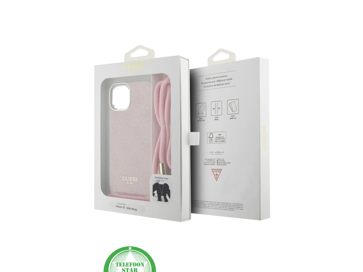 Combineer stijl, comfort en bescherming met dit prachtige Roze crossbody hoesje voor de iPhone 15.