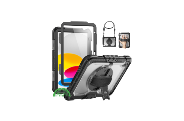 Verstelbare handriem op de achterkant, zodat je de iPad veilig met één hand kunt vasthouden – handig voor monteurs, leraren, magazijnmedewerkers en kinderen.