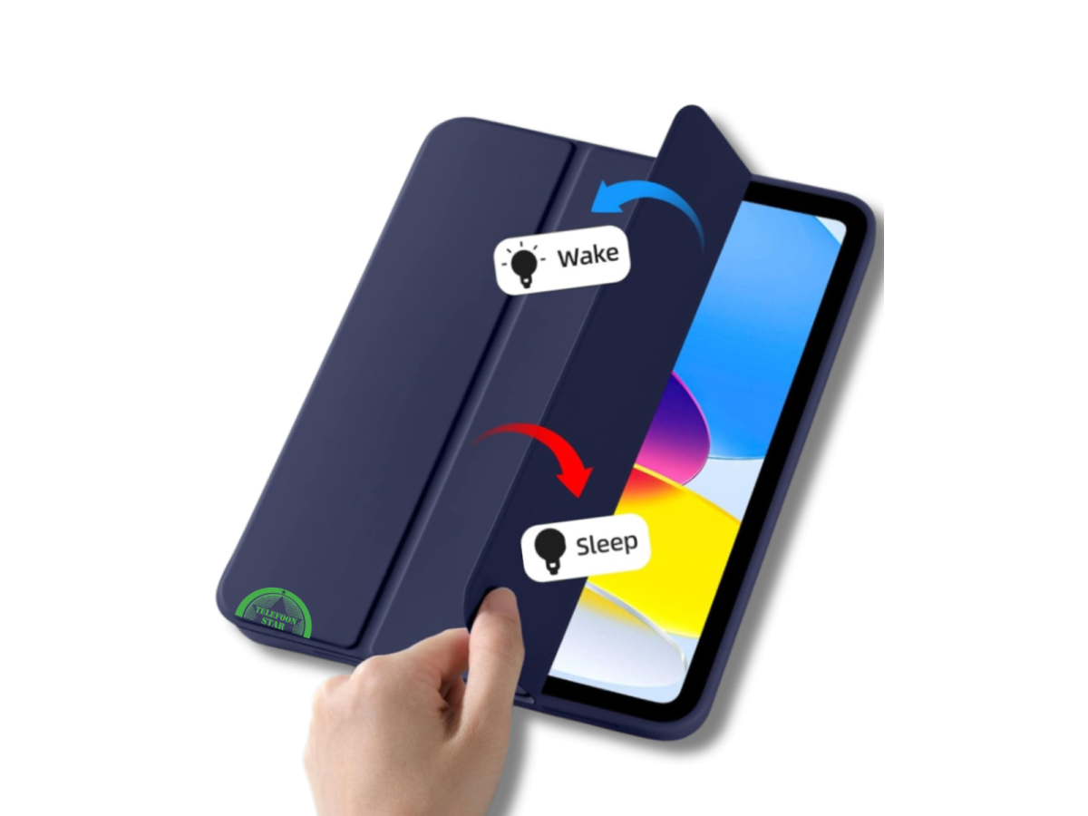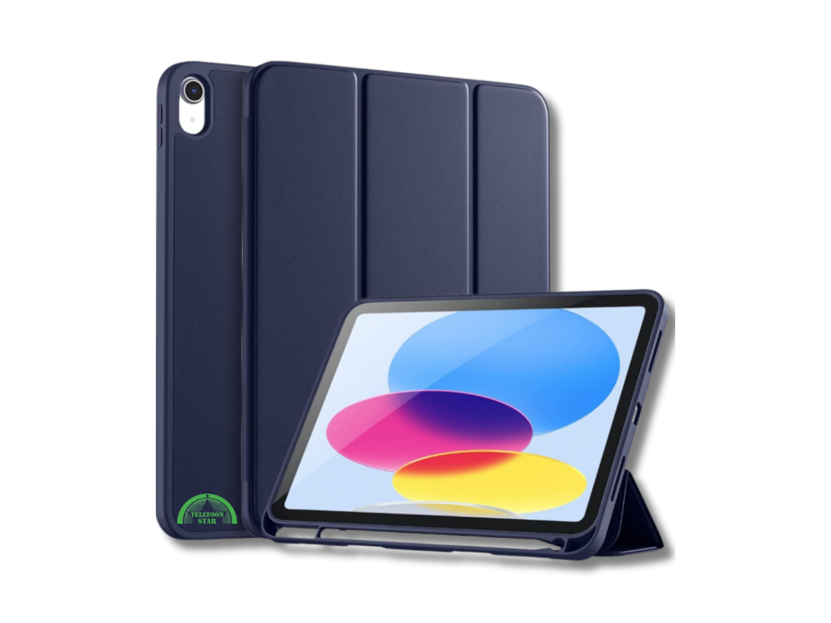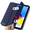 Deze donkerblauwe silicone Smart Cover is speciaal ontworpen voor de iPad A16 (2025) en iPad 2022 10.9 inch (10e generatie). Het hoesje combineert een slank design met betrouwbare bescherming en extra gebruiksgemak.