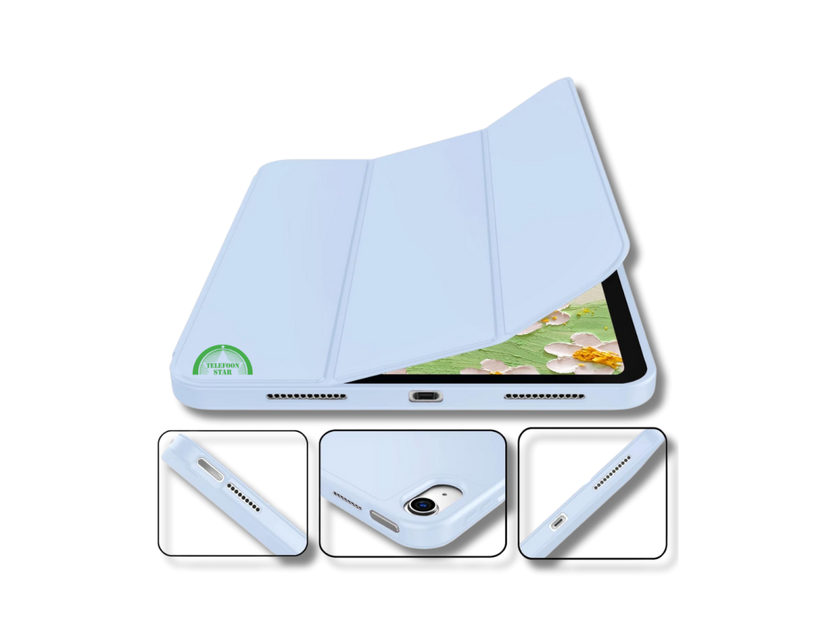 Deze Lichtblauw silicone Smart Cover is speciaal ontworpen voor de iPad A16 (2025) en iPad 2022 10.9 inch (10e generatie). Het hoesje combineert een slank design met betrouwbare bescherming en extra gebruiksgemak.
