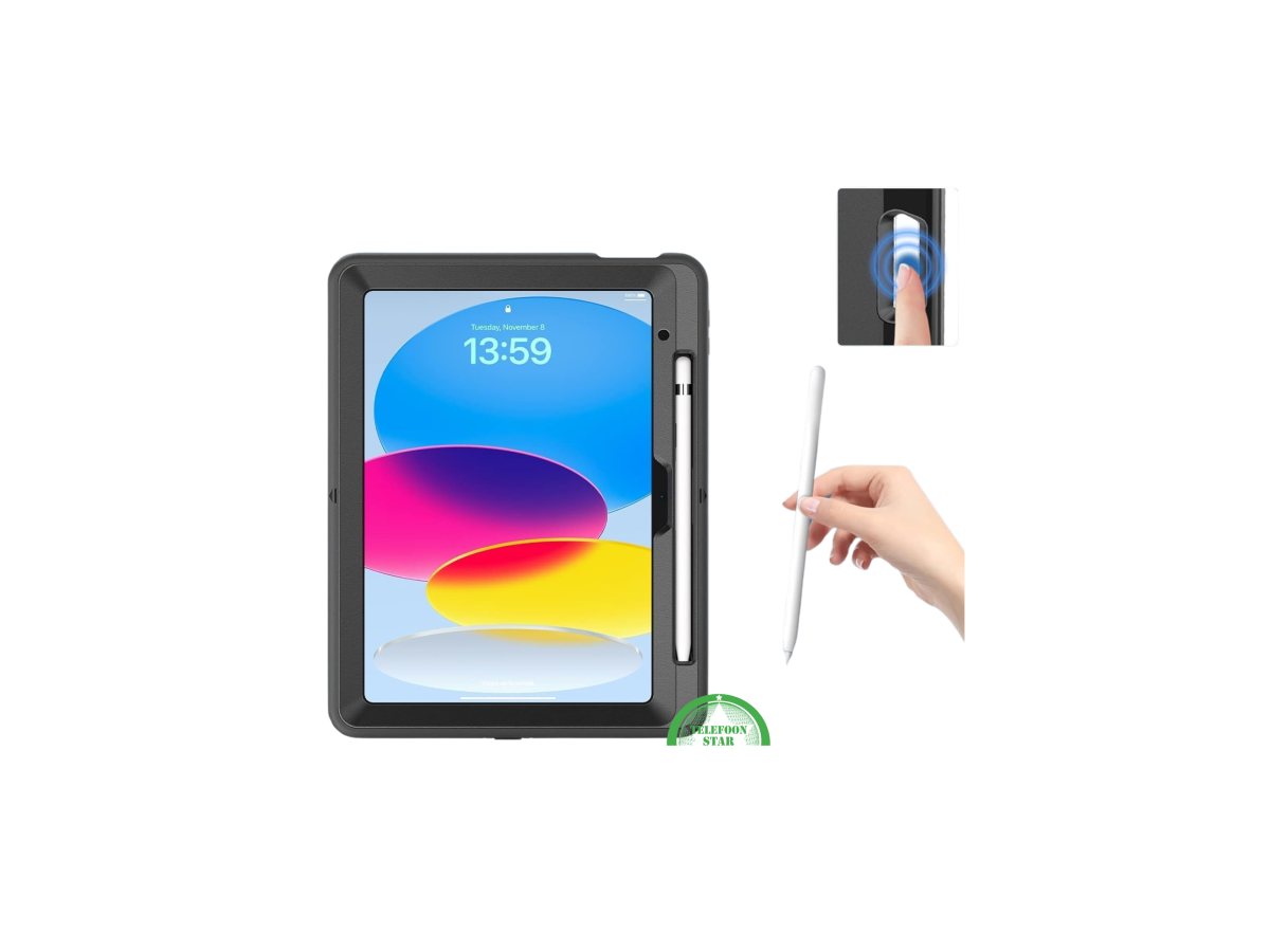 Deze heavy-duty iPad 10.9 hoes biedt maximale bescherming voor dagelijks en professioneel gebruik. De case beschikt over een ingebouwde screenprotector, een stevige 360° roterende handstrap, een kickstand voor handsfree gebruik en een afneembare schouderband om de iPad veilig te dragen.