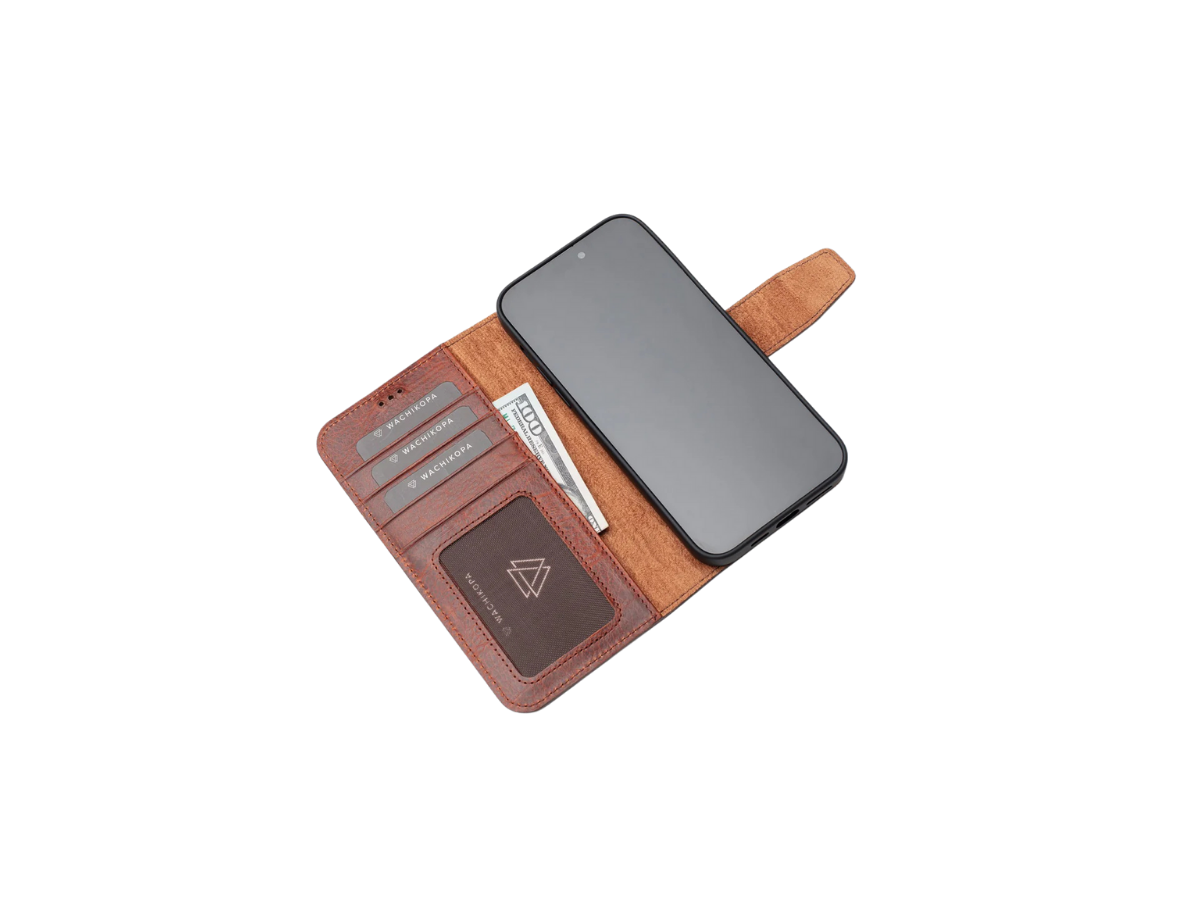Dit Licht bruin premium wallet hoesje voor iPhone 13 Pro combineert zakelijke elegantie met praktische bescherming. Met meerdere kaartvakken, een stevige magnetische sluiting en een hoogwaardige leerlook is dit hoesje perfect voor dagelijks gebruik en professioneel omgevingen.