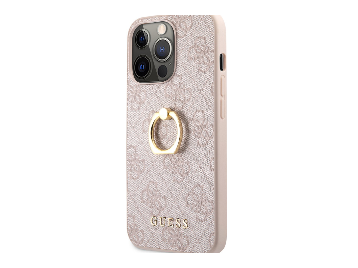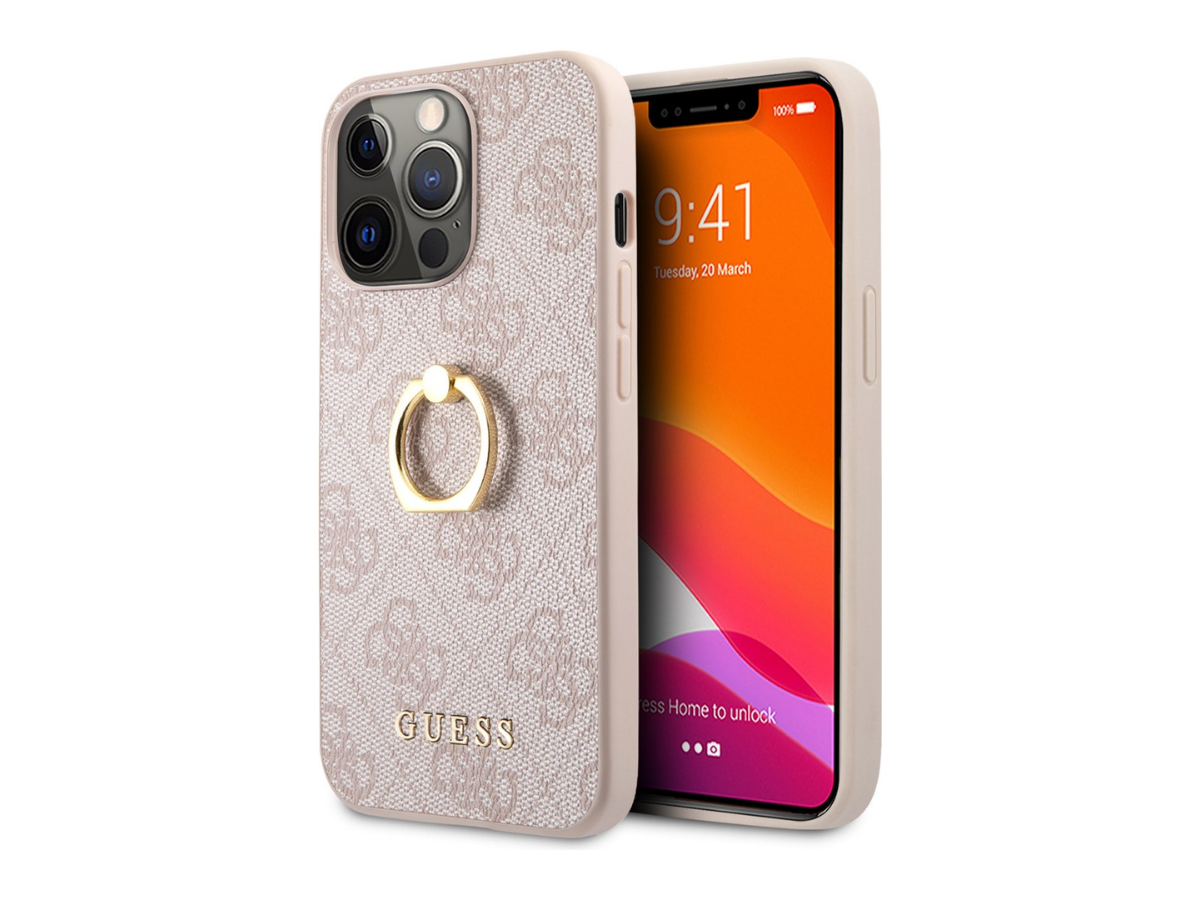 Zoek je een stijlvol én praktisch hoesje voor je iPhone 13 Pro? Dit Roze designer hoesje met subtiel patroon en gouden ringhouder combineert mode en bescherming in één. De stevige backcover volgt nauwkeurig de vorm van de iPhone 13 Pro, zodat je toestel goed beschermd is tegen krassen, stoten en alledaagse ongelukjes, zonder dat het dik of zwaar wordt.
