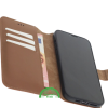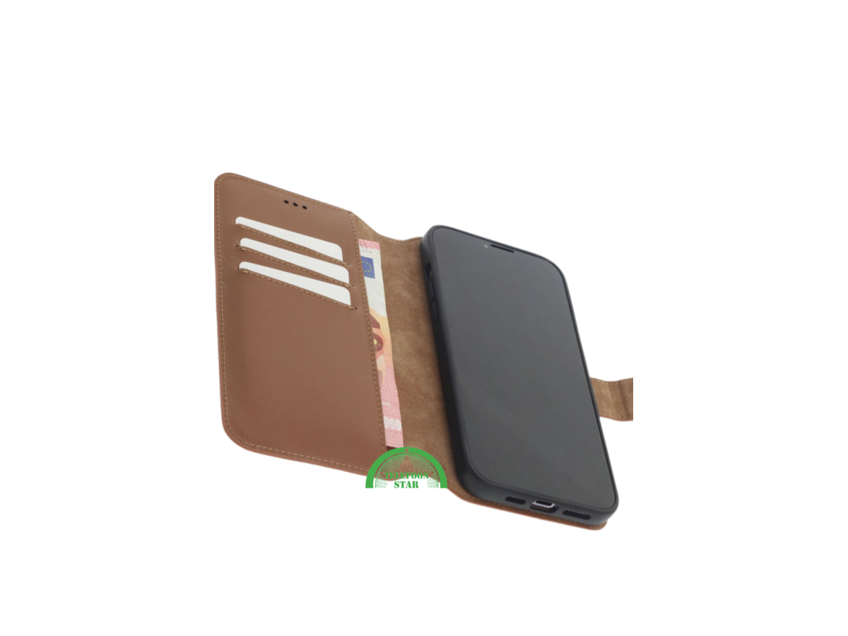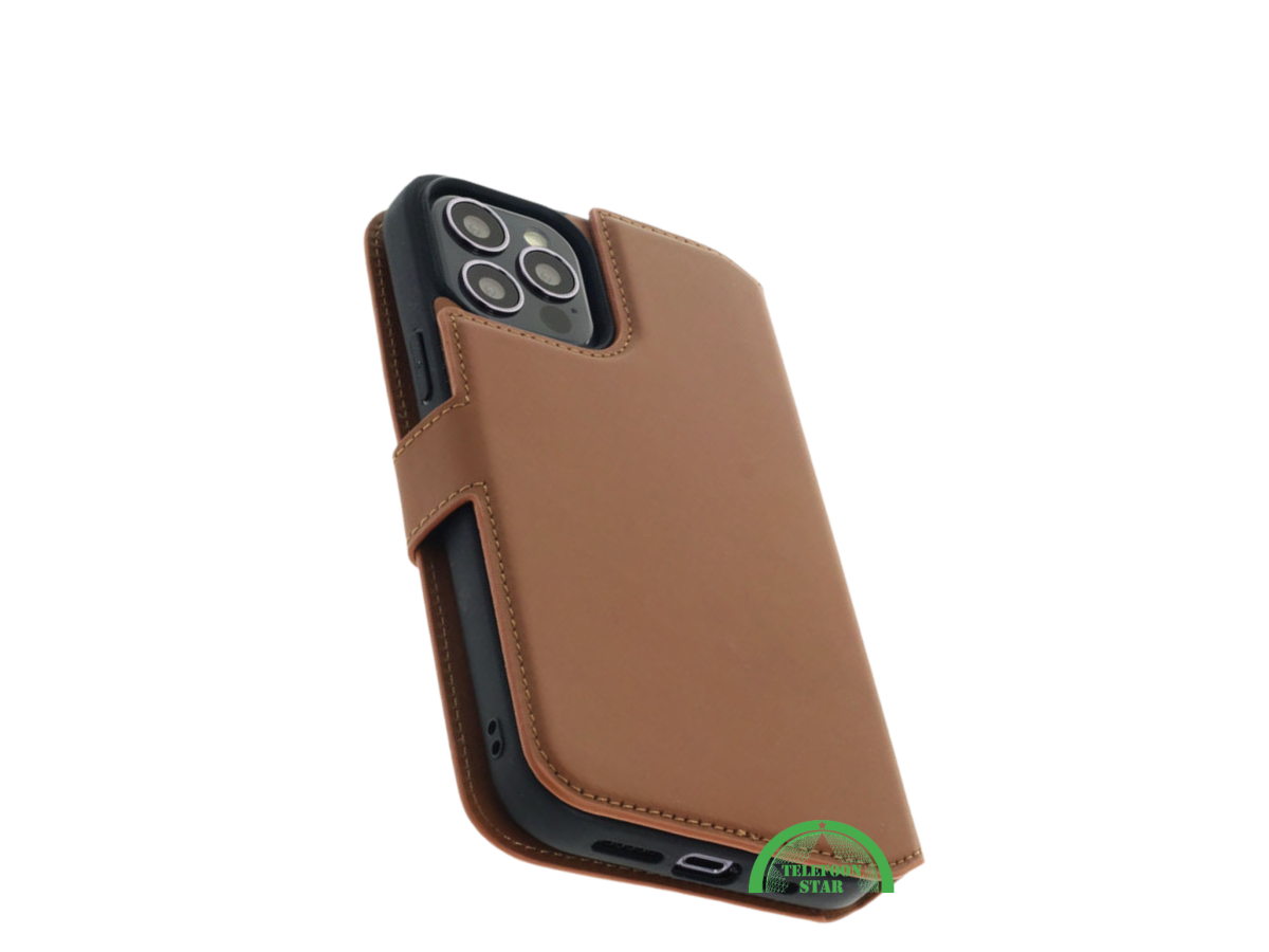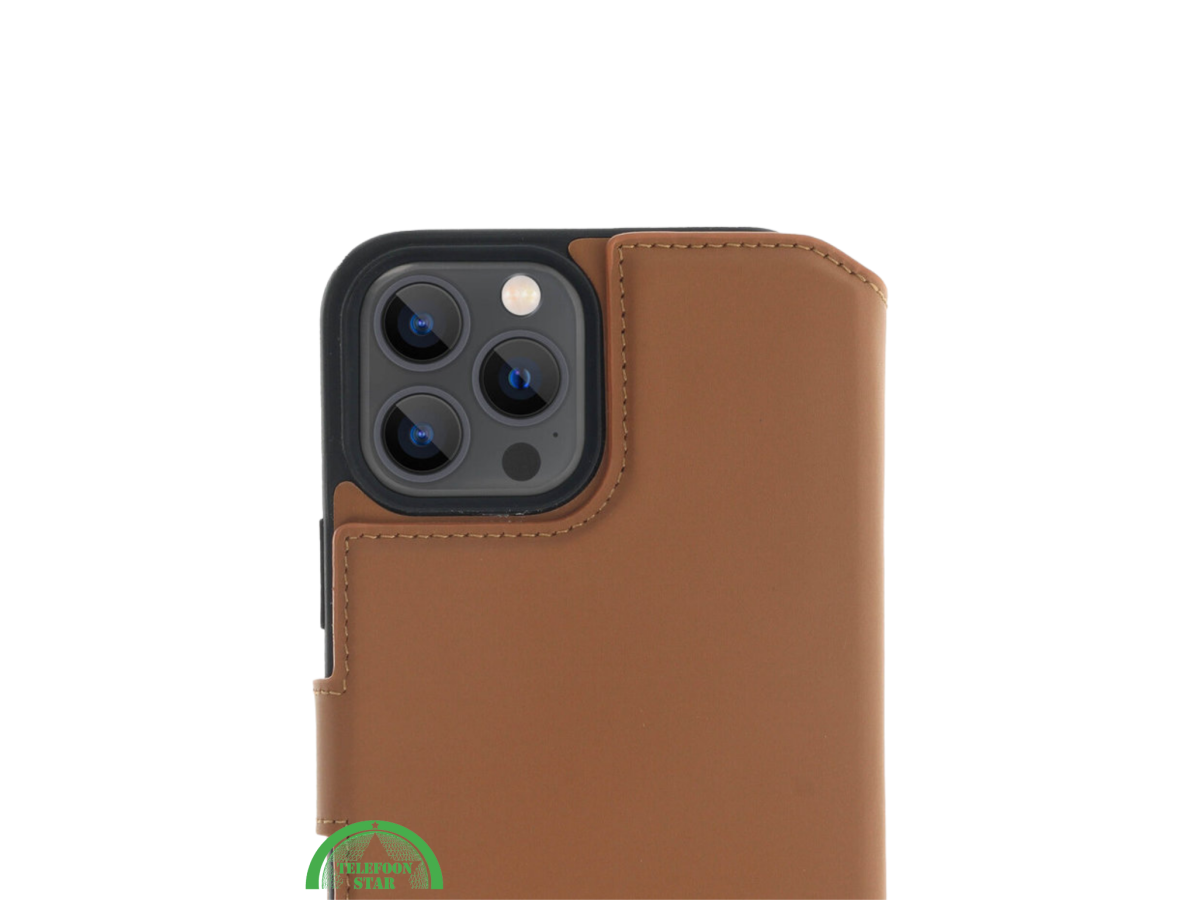 Dit bruin leather-look bookcase hoesje voor iPhone 14 Pro Max biedt een perfecte combinatie van luxe uitstraling en maximale bescherming. De hoogwaardige leerstructuur voelt zacht en stevig aan, terwijl de schokabsorberende binnenhouder je toestel veilig omsluit.