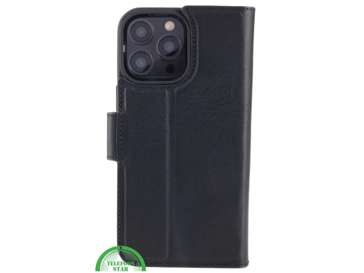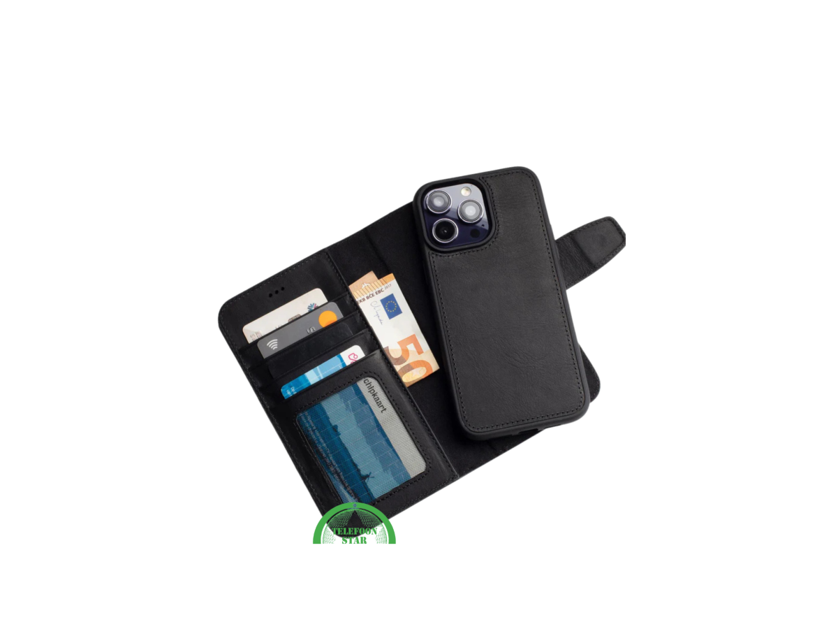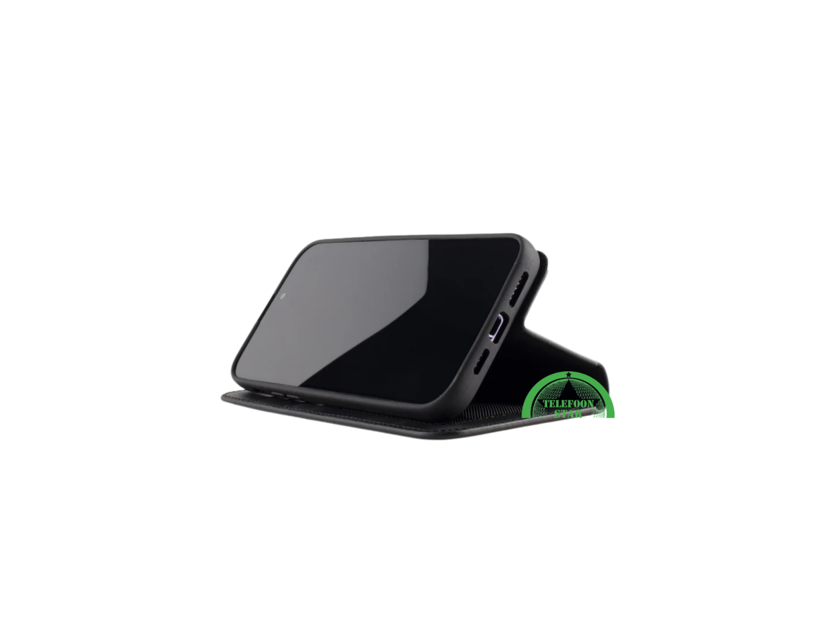 Dit Zwart bookcase hoesje voor iPhone 14 Pro Max biedt een luxe uitstraling gecombineerd met maximale veiligheid. De hoogwaardige leerlook voelt stevig en elegant aan, terwijl de flipcover je toestel volledig omsluit tegen krassen, stoten en vallen.