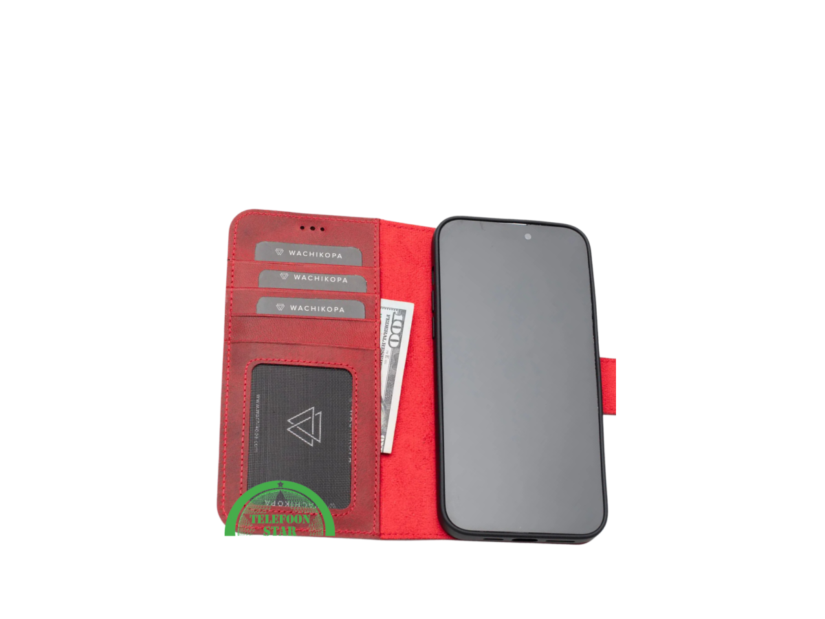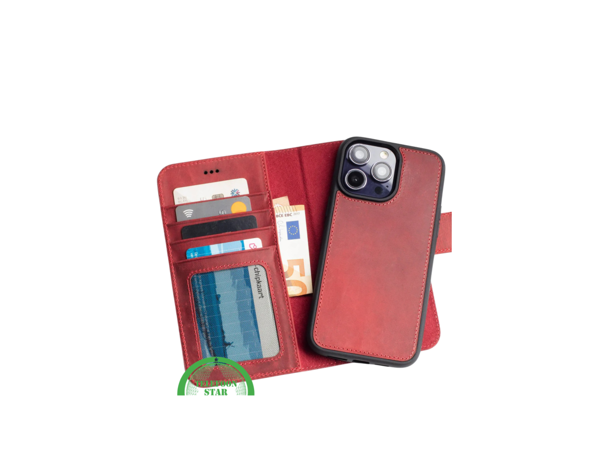 Dit rode bookcase hoesje voor iPhone 14 Pro Max biedt een luxe uitstraling gecombineerd met maximale veiligheid. De hoogwaardige leerlook voelt stevig en elegant aan, terwijl de flipcover je toestel volledig omsluit tegen krassen, stoten en vallen.
