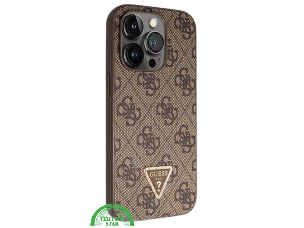 Elegant bruin design: Luxe afwerking met subtiel patroon en stijlvol driehoekig logo.