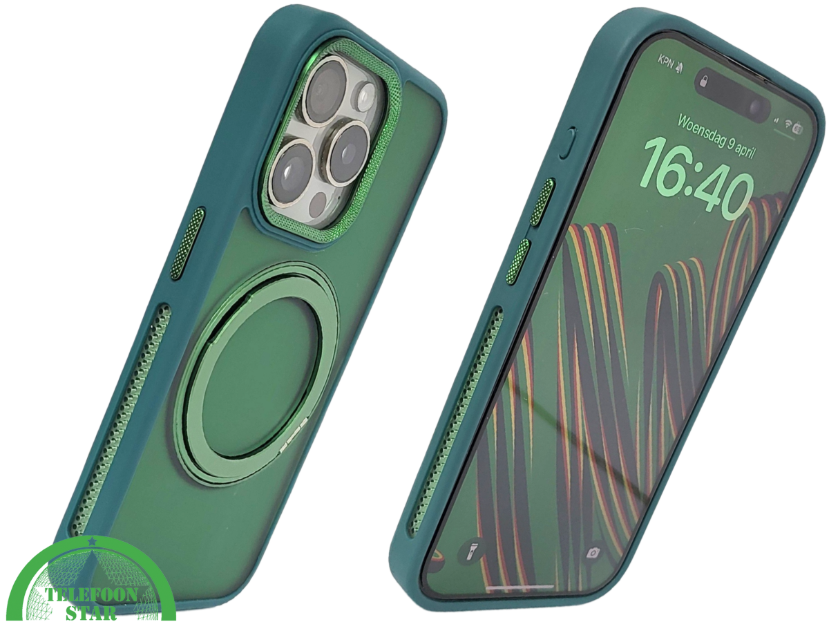 Maak een statement met dit groene hoesje met ringhouder voor de iPhone 15 Pro.
