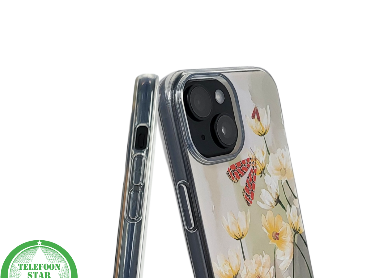 Een hoesje dat net zo mooi is als functioneel. De bloemen en vlinder zijn met zorg ontworpen om een kalme, natuurlijke sfeer uit te stralen. Perfect voor de lente- en zomerse dagen, of gewoon als blijvende herinnering aan de natuur.