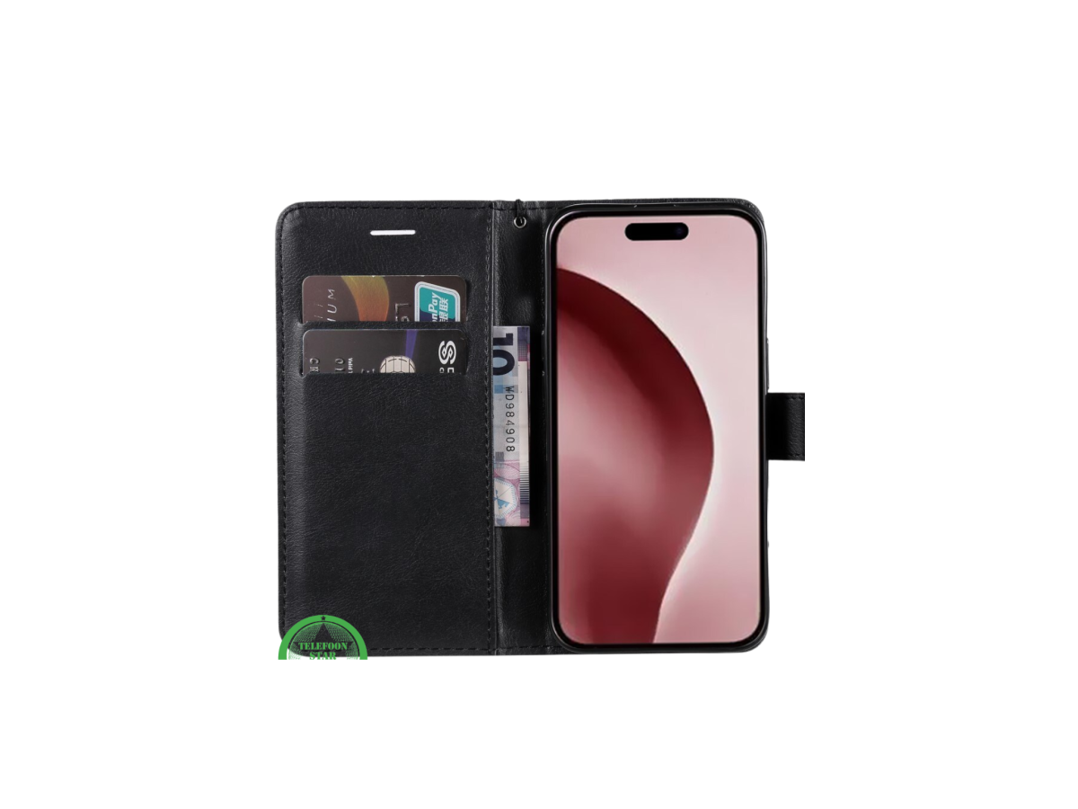 Deze zwarte bookcase voor iPhone 16 Pro biedt stijlvolle bescherming met een luxe leren uitstraling. De binnenzijde beschikt over meerdere kaartvakken, perfect voor je ID, bankpas of OV-kaart. De magnetische sluiting zorgt ervoor dat de case stevig dicht blijft en je scherm optimaal beschermd is.