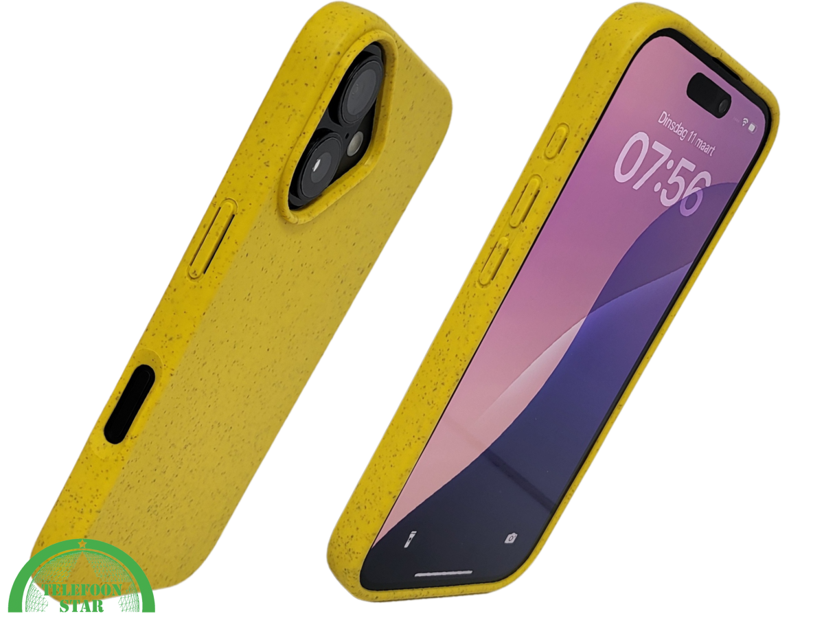 iPhone 16 hoesje geel eco-vriendelijk bioplastic schokbestendige cover: Bescherming, Stijl en Draadloos Opladen