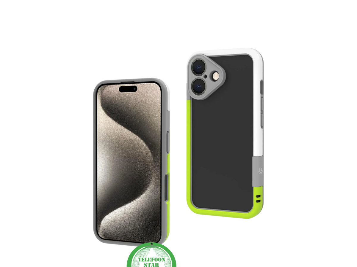 | Geschikt voor | iPhone 16 Stootbestendig Hoesje – Sportieve Bescherming in Zwart, Wit & Limegroen |
