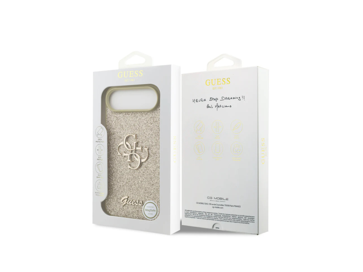 Breng stijl en luxe samen met het Guess iPhone 17 Pro Hoesje met MagSafe in Zilver. Dit hoesje combineert een sprankelend glitterdesign met hoogwaardige bescherming voor je iPhone. De glinsterende zilveren afwerking en het iconische GUESS-logo maken dit accessoire tot een echte fashion statement.