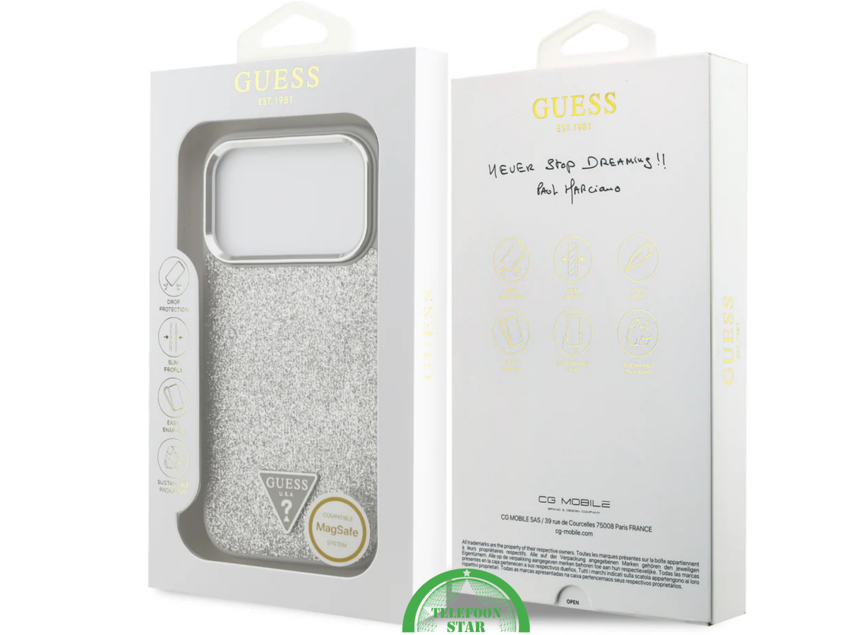 Guess iPhone 17 Pro Hoesje – Zilver Glitter MagSafe