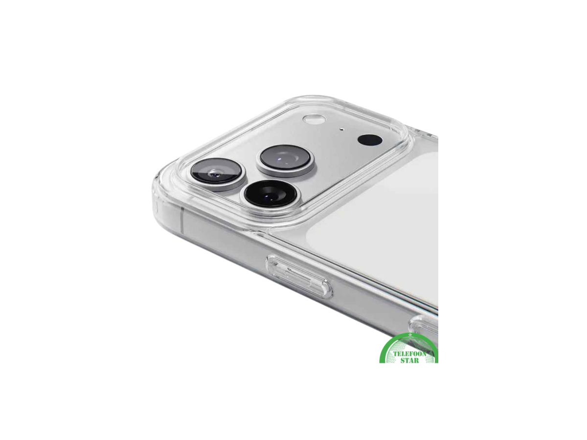 Geef je iPhone 17 Pro de bescherming die het verdient met dit transparante silicone hoesje. Het flexibele materiaal absorbeert schokken en biedt sterke valbescherming, terwijl het slanke ontwerp de luxe uitstraling van je toestel behoudt. Dankzij de verstevigde hoeken en verhoogde cameraring blijft jouw 17 Pro veilig bij dagelijks gebruik.
