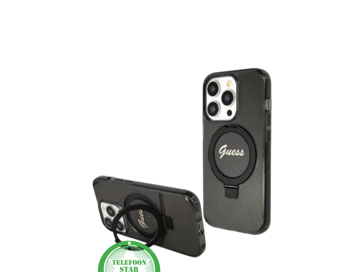Geef je iPhone 15 Pro Max een vleugje glamour met dit stijlvolle hoesje met ingebouwde ringhouder. Het subtiele glittereffect in combinatie met het elegante logo geeft dit hoesje een luxueuze uitstraling. De stevige ring biedt extra grip, voorkomt vallen en kan gebruikt worden als standaard – ideaal voor het bekijken van video’s of videobellen.