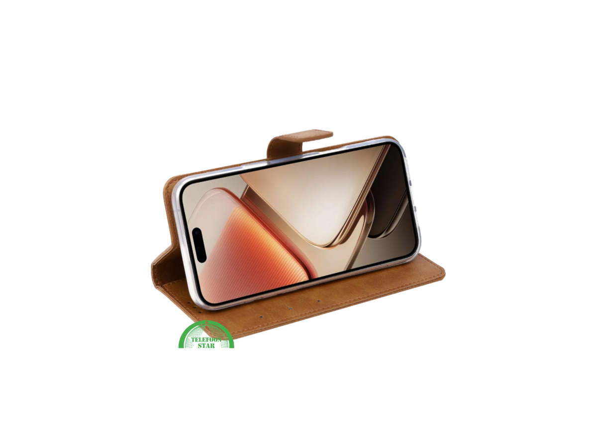Dan is de LeatherFold Wallet Bookcase – Bruin de ideale keuze. Gemaakt van hoogwaardig kunstleer, met een warme bruine kleur en nette stiknaden.