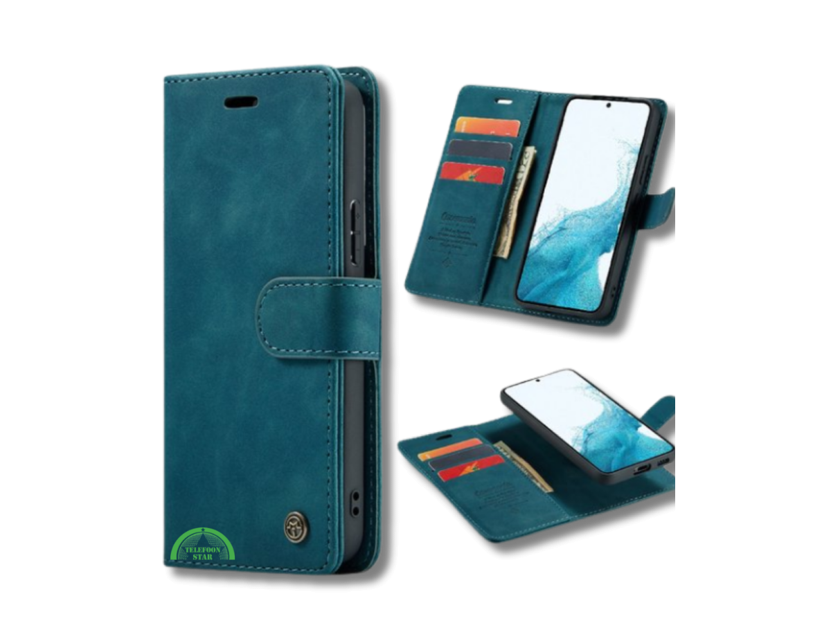 Bescherm je OPPO Reno 11F in stijl met de VintageBook Wallet Case. Dit luxe Blauwgroene boekhoesje heeft een klassieke leren look en biedt volledige bescherming voor zowel het scherm als de achterkant van je toestel. Dankzij de stevige magnetische sluiting blijft je telefoon veilig opgeborgen.