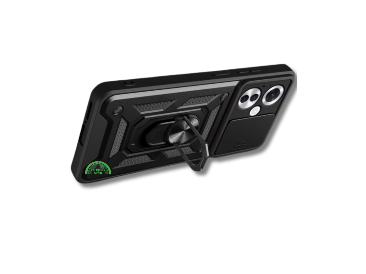 Dit stoere en extra sterke Armor Hoesje voor de Oppo Reno 11F is gemaakt voor gebruikers die echte bescherming willen. Het hoesje combineert een stevig frame, schokabsorberende randen, een metalen ring kickstand en een sluitbare cameraslider om je toestel veilig en compleet te houden.