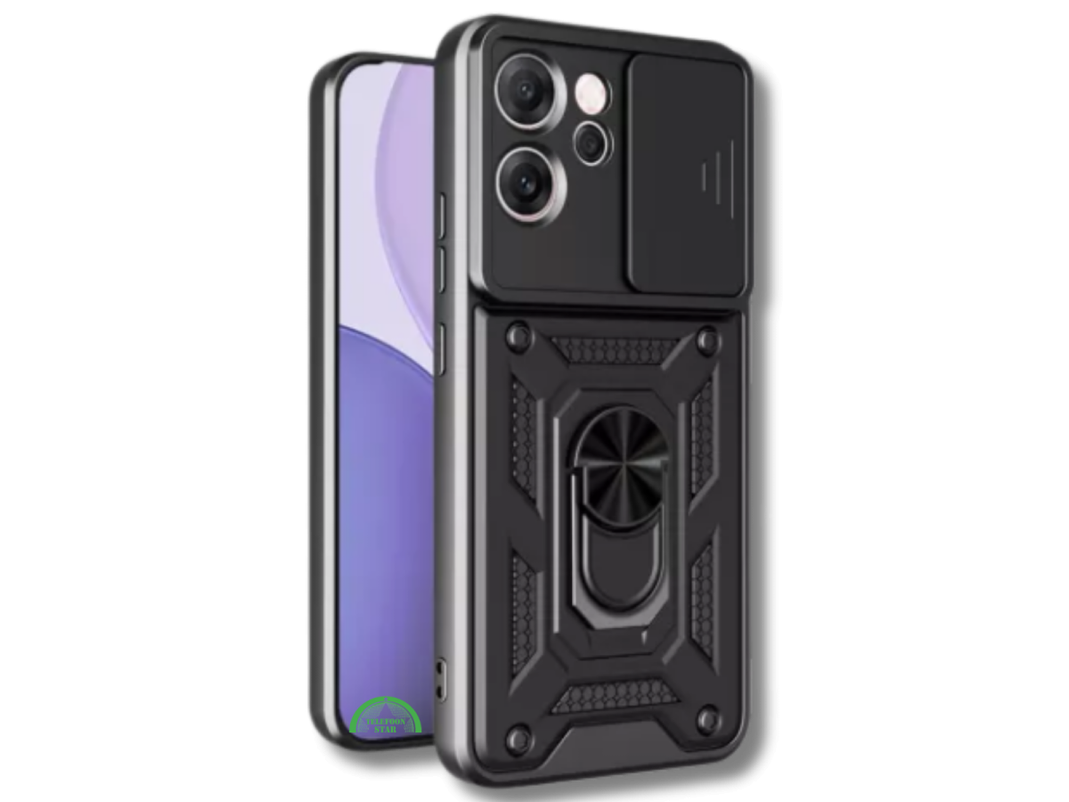 Dit stoere en extra sterke Armor Hoesje voor de Oppo Reno 14F is gemaakt voor gebruikers die echte bescherming willen. Het hoesje combineert een stevig frame, schokabsorberende randen, een metalen ring kickstand en een sluitbare cameraslider om je toestel veilig en compleet te houden.