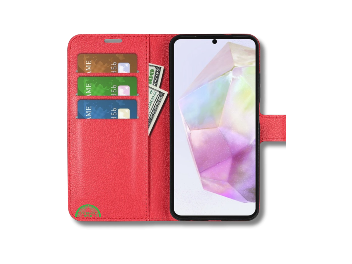Dit vintage bookcase hoesje voor de Samsung Galaxy A36 combineert klassieke uitstraling met praktische bescherming. De warme Rood leerlook geeft je telefoon een luxe en tijdloos karakter, terwijl het stevige TPU-binnenframe optimale bescherming biedt tegen krassen, stoten en vallen.