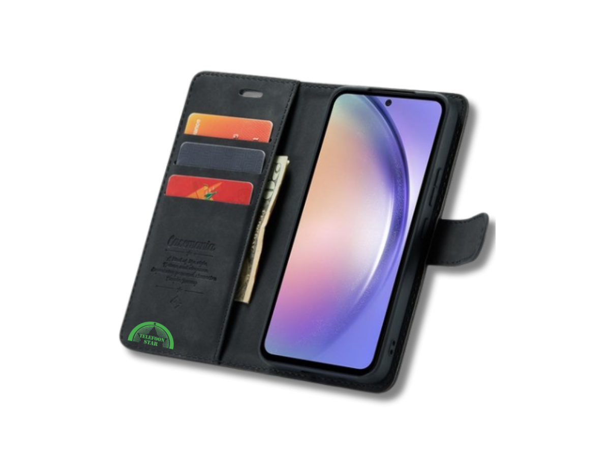 De magnetische sluiting houdt het hoesje stevig dicht, terwijl het schokabsorberende materiaal je Samsung A56 optimaal beschermt tegen krassen en stoten.