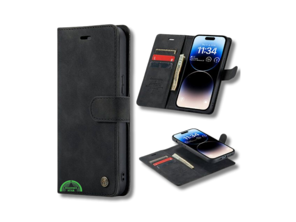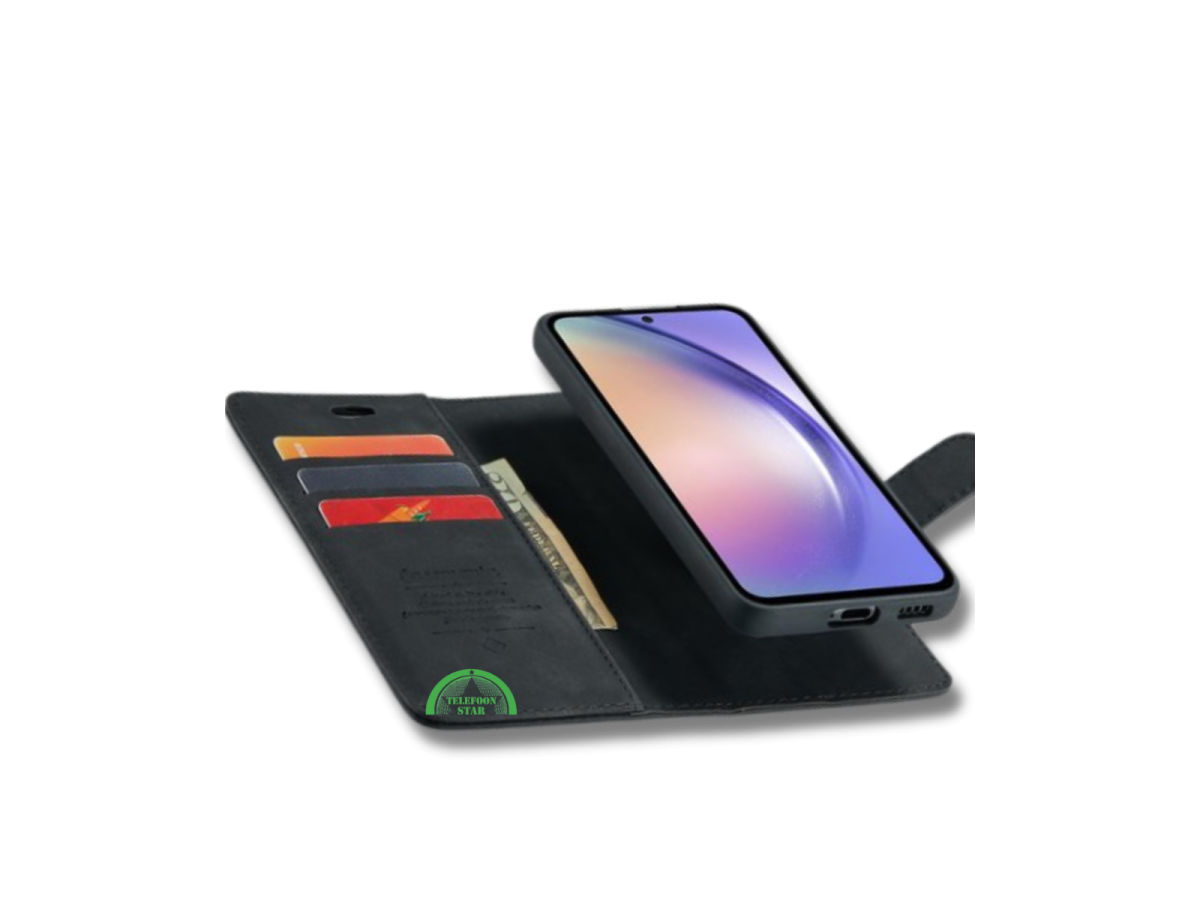 Dit 2-in-1 magnetische bookcase hoesje voor de Samsung Galaxy A56 combineert bescherming, gemak en een luxe uitstraling. Het hoesje bestaat uit een afneembare backcover en een bookcase met pasjeshouder, die magnetisch aan elkaar vastzitten.