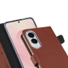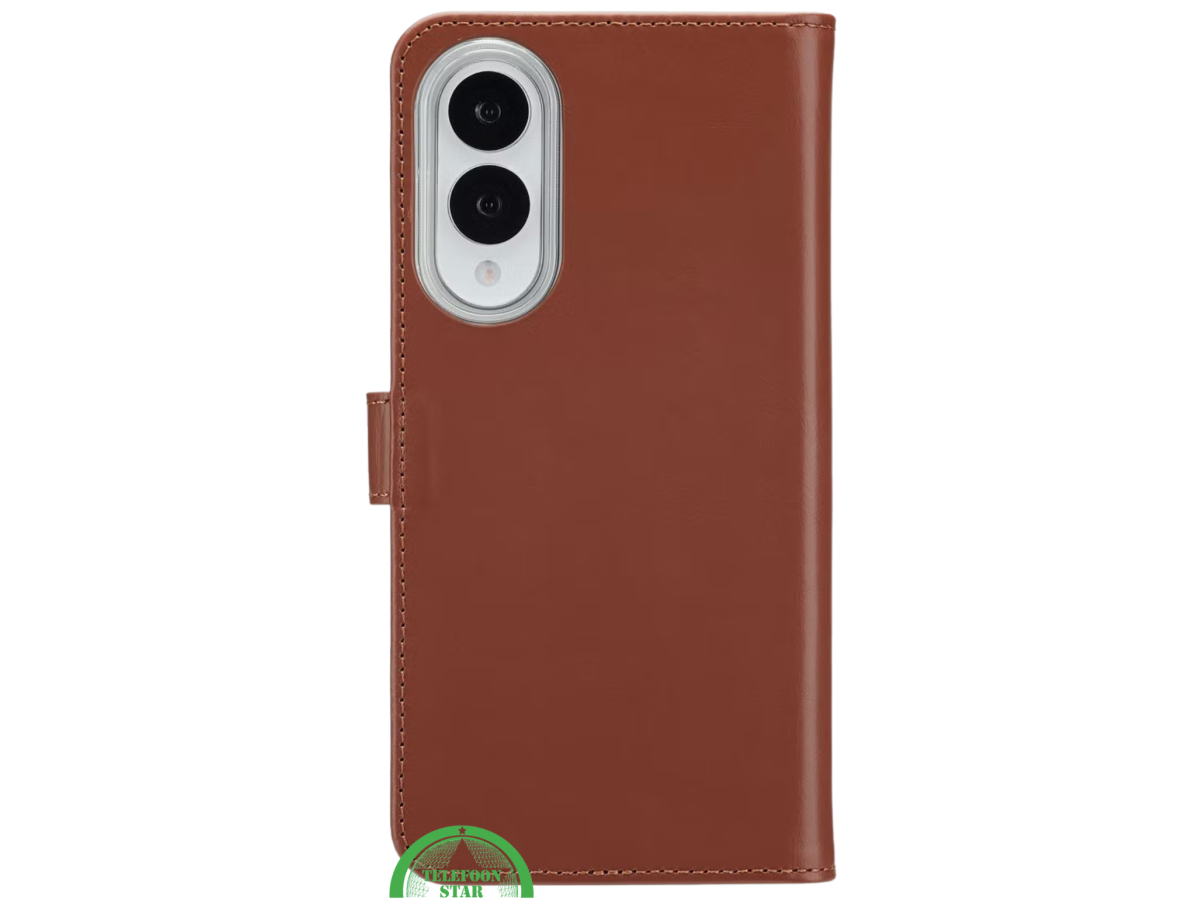 Het bruine kunstleer geeft jouw smartphone een klassieke, zakelijke uitstraling.