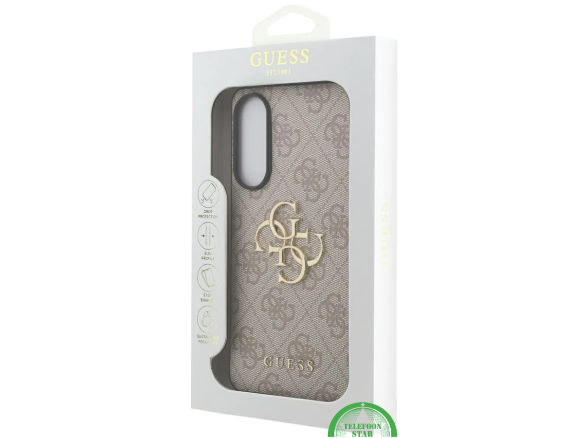 De achterkant heeft een stijlvolle lederlook structuur met een elegante gouden afwerking.