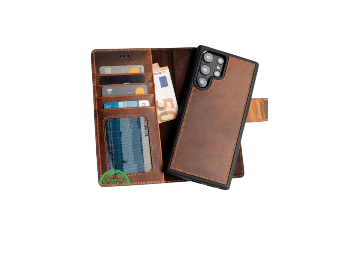 Het ontwerp heeft een warme bruine vintage kleur met luxe stiknaden en een camerauitsparing die speciaal is versterkt voor de grote S25 Ultra-lensmodule. De binnenzijde biedt volledige bescherming én ruimte voor pasjes, waardoor dit hoesje ideaal is voor dagelijks gebruik.