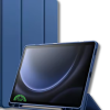 Dit donkerblauwe Silicone Smart Cover hoesje voor de Samsung Galaxy Tab A9 Plus biedt een perfecte combinatie van bescherming, stijl en gebruiksgemak. Het hoesje is voorzien van een pen slot, zodat je stylus altijd veilig opgeborgen is, en een uitklapbare kickstand voor comfortabel kijken, typen of videobellen.
