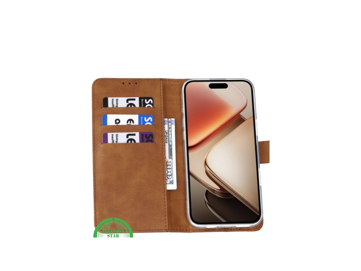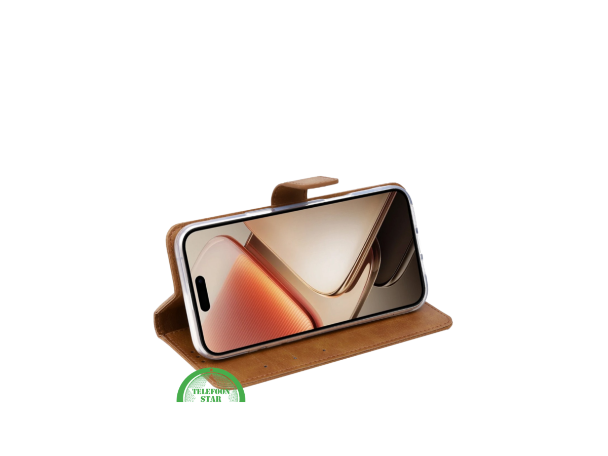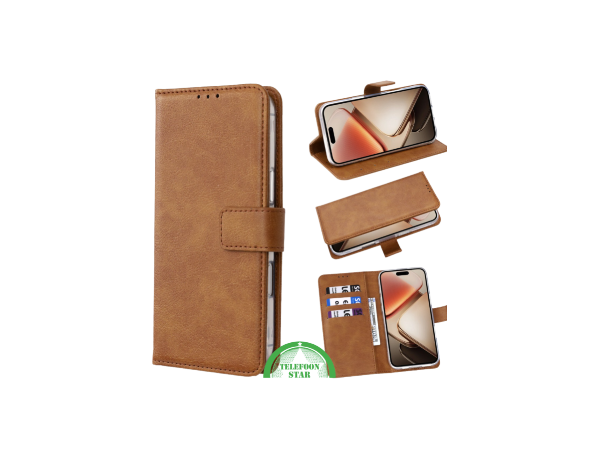 Geef jouw Xiaomi Redmi 15 5G een stijlvolle en professionele uitstraling met deze LeatherFold Wallet Bookcase in warm bruin.